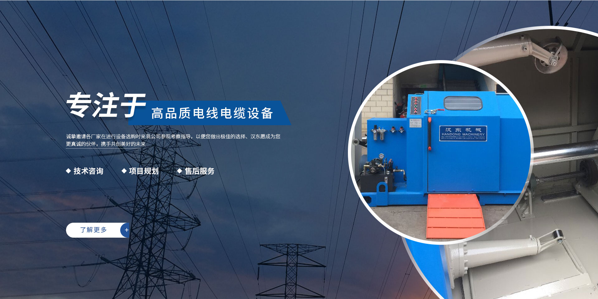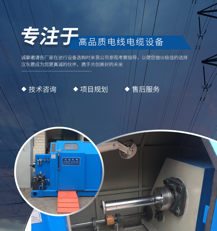 常州漢東機械始創(chuàng)于2006年,是集電線電纜機械設計、開發(fā)、制造、安裝、調試為一體化的高科技企業(yè)。本公司自開業(yè)以來,積極引進日本,歐美等國外電線電纜設備之先進技術,先后成功推出了達到行業(yè)先進水平的電線電纜設備,主要產品有擠出、繞包、束線、成纜等電線電纜固定設備。在提供系統(tǒng)設備的同時,還向客戶提供售前技術咨詢、項目規(guī)劃、以及售后服務。我公司本著“以人為本、科技先導、用戶為上”的宗旨,為客戶提供牢靠的產品與省心的服務。漢東愿成為您更真誠的伙伴,攜手共創(chuàng)美好的未來!